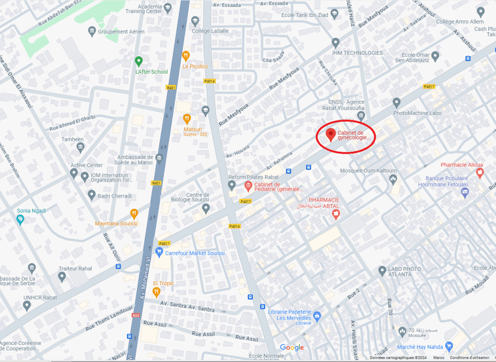Contact ← BackVotre message a été envoyé Nom(required) Attention Email(required) Attention Message Attention Attention ! EnvoyerEnvoi du formulaire Δ ✉ dr.nivine.cherkaoui@gmail.com ✉ bio.gyneco@gmail.com (réception de bilans) 📞 +212 537652091 📞 +212 623248083 📍 7, Avenue Al Haouz, Cité Administrative-Takaddoum, Rabat Facebook Instagram LinkedIn Adresse PRENDRE RENDEZ-VOUS
